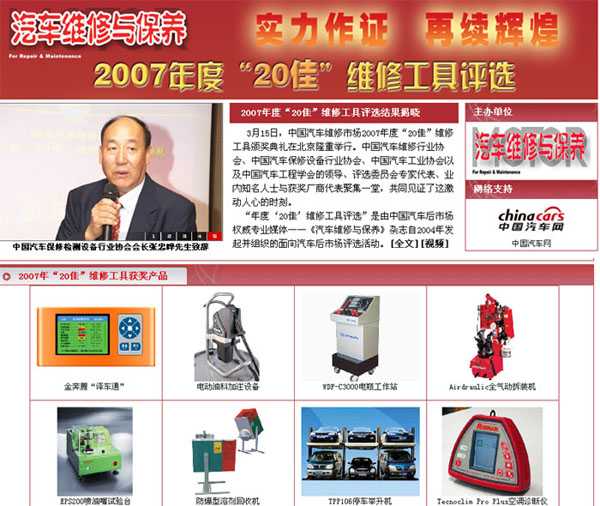 有關(guān)2007年度“20佳”維修工具上榜產(chǎn)品的詳細(xì)信息請見2008年第4期《汽車維修與保養(yǎng)》雜志。