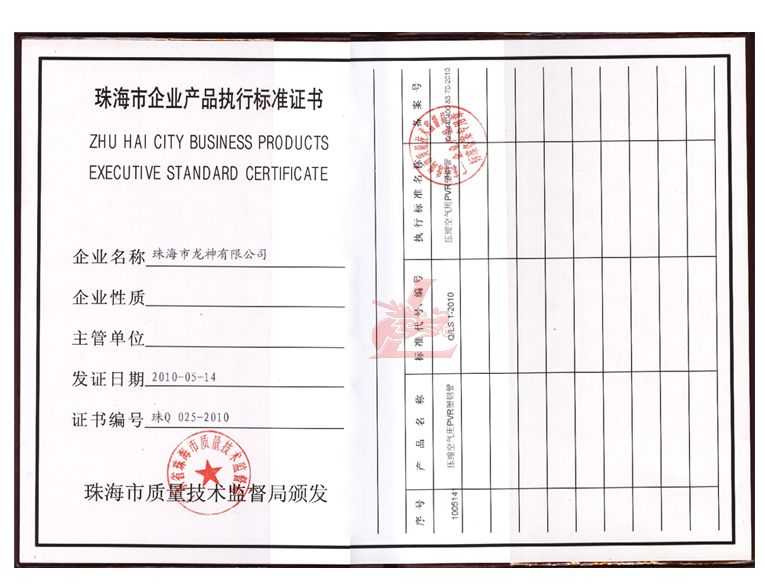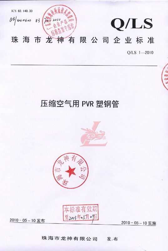 龍神壓縮空氣PVR塑鋼管成功申請(qǐng)企業(yè)執(zhí)行標(biāo)準(zhǔn) 2010年5月珠海市龍神有限公司“壓縮空氣PVR塑鋼管”得到珠海市質(zhì)量技術(shù)監(jiān)督局認(rèn)可,特此頒發(fā)“壓縮空氣PVR塑鋼管企業(yè)執(zhí)行標(biāo)準(zhǔn)”,龍神公司在嚴(yán)格執(zhí)行標(biāo)準(zhǔn)下,保證產(chǎn)品質(zhì)量。 2010-05-20 10014