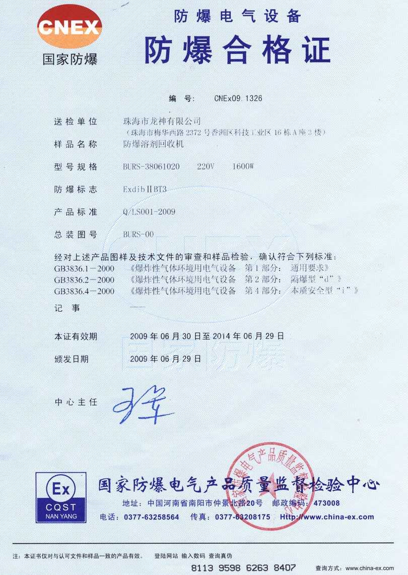 防爆認(rèn)證 防爆溶劑回收機(jī)防爆合格證 BURS系列防爆溶劑回收機(jī)技術(shù)條件 BURS-38061020型防爆溶劑回收機(jī) 使用說(shuō)明書(shū) BURS-38061020型防爆溶劑回收機(jī) 圖紙資料 (以上圖片均可點(diǎn)擊放大) 2012-11-27 34918