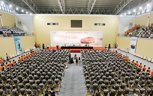 6月20日上午,2013年全國(guó)職業(yè)院校技能大賽中職組“雪佛蘭杯”汽車運(yùn)用與維修技能大賽開幕式在無錫汽車工程中等專業(yè)學(xué)校體育館舉行。交通運(yùn)輸部道路運(yùn)輸司王水平副司長(zhǎng)、江蘇省教育廳楊湘寧副廳長(zhǎng)、無錫市人民政府華博雅副市長(zhǎng)、大賽主贊助商——上海通用汽車有限公司黨委書記黃強(qiáng)出席開幕式并致辭。裁判員代表洪永楠、參賽選手代表何宇先后宣誓。大賽開幕式由國(guó)家教育部職成教司農(nóng)村教育處劉杰處長(zhǎng)主持。